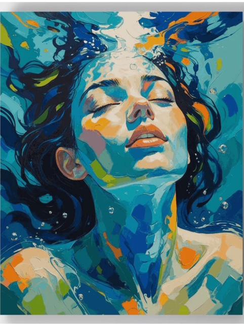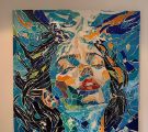 Ich war bei meiner Freundin zu Besuch und sie zeigte mir ein Bild, welches sie gerade malte. Es war ein sogenanntes Hobby Kit, Motiv, Farben, Pinsel alles wird mitgeliefert, ich habe es als Kind auch einmal geschenkt bekommen, ich fand es langweilig und habe die Farben anderweitig benutzt. Das Motiv meiner Freundin allerdings hat mir sehr gefallen, die Farbkomposition, deren Verlauf und wie Sie die Abkühlung genießt. Ich habe mich dann gefragt, ob es möglich ist, einen Pinselstrich, seinen Schwung, die Farbverläufe auch in Glas umzusetzen. Es war ein Experiment. Es war anstrengend und eigentlich wollte ich schon fast aufgeben, aber dann ein zufällig passendes Glasstück, und es ging wieder weiter. Ich musste mich einfach von klassischen Verlegearten lösen, die gab es hierbei nicht, die Strömung des Wassers, der Lichteinfall, die Haare, die Richtungen waren gegensätzlich, ohne System. Letztendlich bin ich glücklich darüber, dass ich nicht aufgegeben habe, das Ergebnis ist wunderschön geworden und was kann Wasser besser imitieren als Glas. Diese Transluzenz des Glases und der Glanz das hätte ich mit Acrylfarben nicht so hinbekommen und das schöne ist, es wird auch in 20 Jahren noch genauso aussehen.